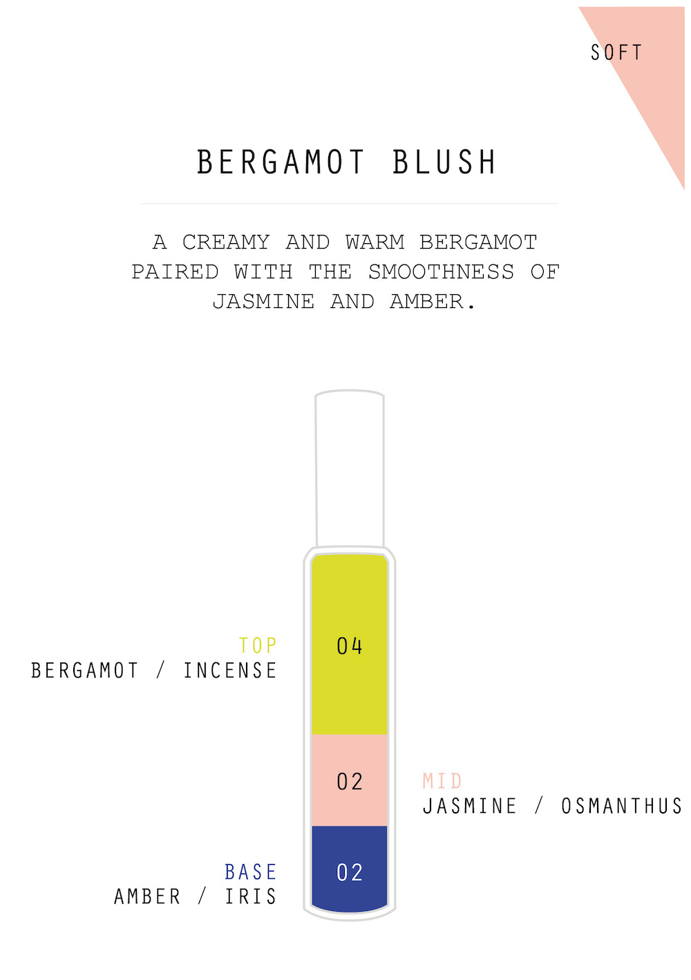 Bergamot Blush is a well-rounded, balanced and easy-to-wear fragrance for the summertime. Blending together three Essential: Bergamot Incense, Jasmine Osmanthus and Amber Iris, it harmonises the exotically-sweet, creamy jasmine and osmanthus with the light spice of frankincense and invigorating freshness of bergamot. It will transport you to a tropical island, somewhere serene and far away.