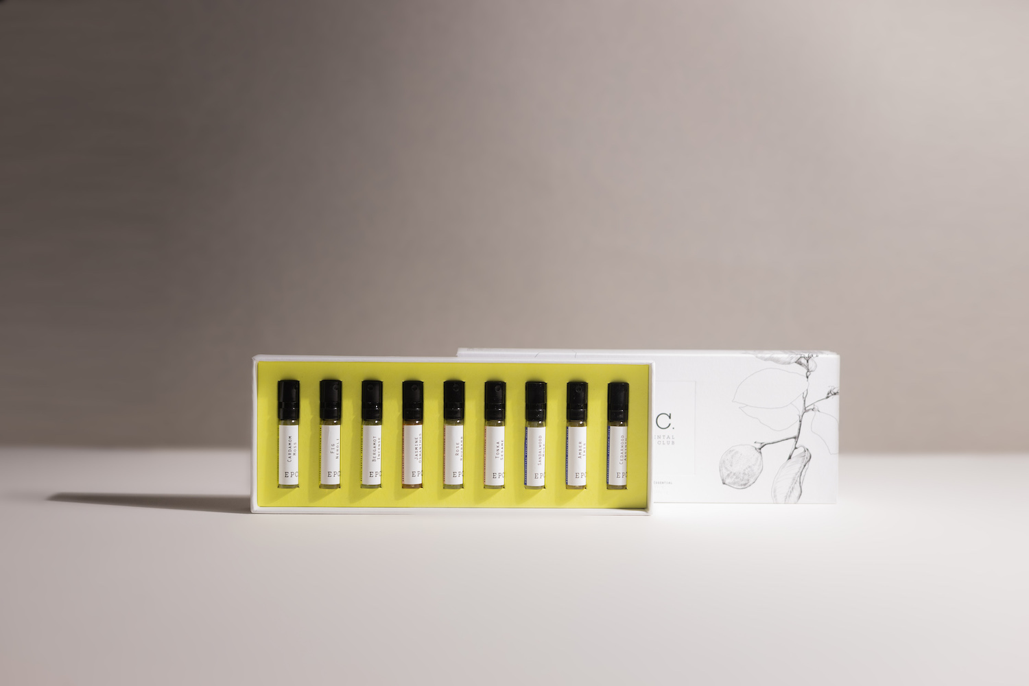 • 9 x 2ml Essential fragrances including: Bergamot Incense, Fig Neroli and Cardamom Moss (from the fresh category), Jasmine Osmanthus, Rose Rhubarb and Tonka Sesame (from the mellow category), Sandalwood Musk, Amber Iris and Cedarwood Absinth (from the deep category)